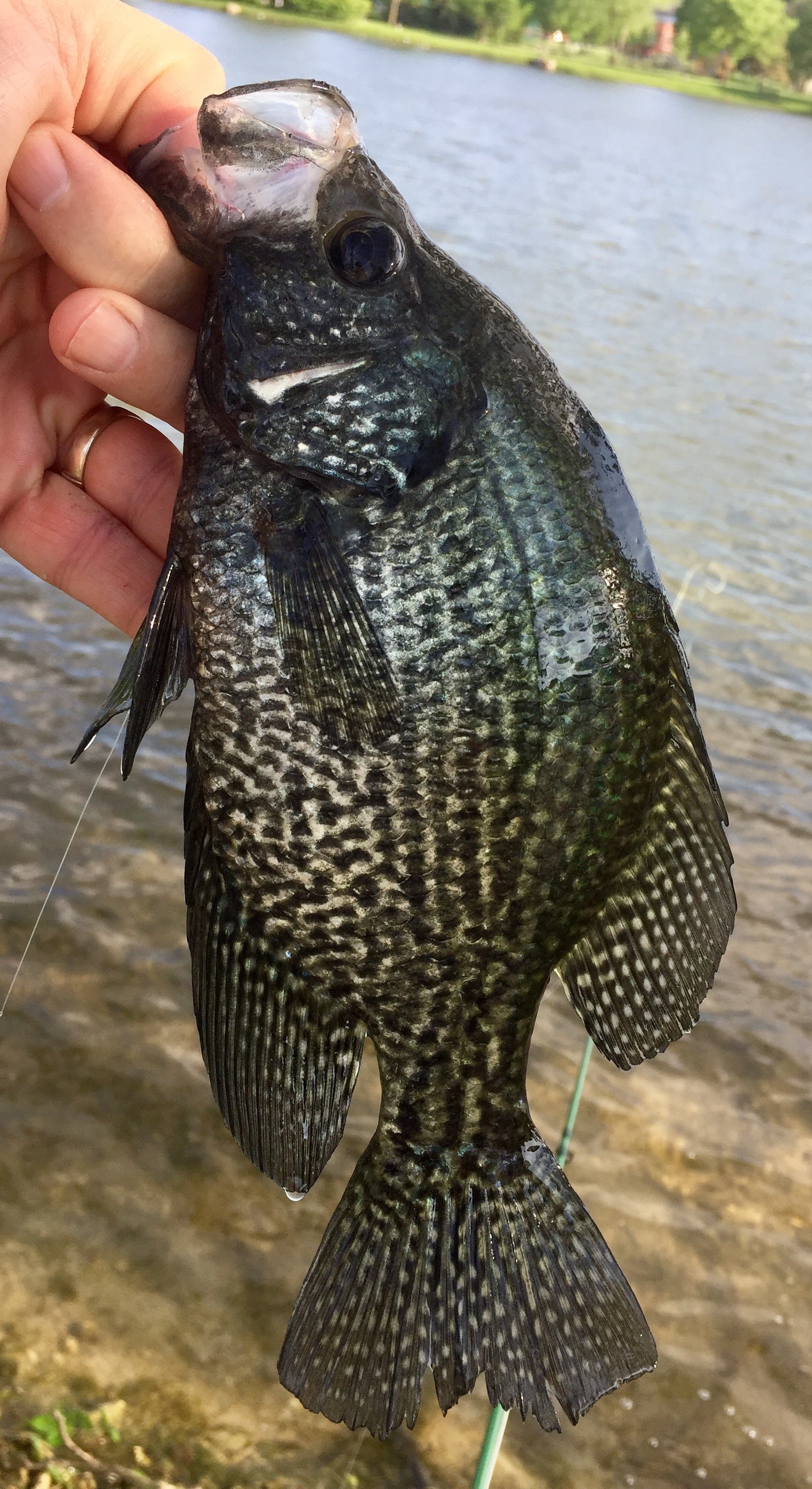But BY FAR the best technique I've learned (from friend Dale Sanders in Ankeny, Iowa) for catching crappies with flyfishing gear almost any time and anywhere, is to use a microjig under an indicator (tiny bobber). This allows you to put an appropriate-sized fly at almost any depth (based on tippet length under the strike indicator), and keep it in front of crappie until they decide to strike. Its exactly what crappie want MOST of the time.
