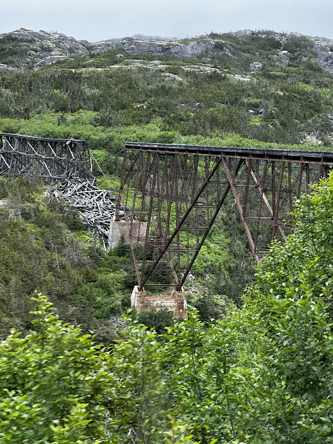 Skagway was sort of the launching point of the Klondike Gold Rush of around 1898. We took a train ride that roughly paralleled the route those folks took. Beautiful country! It looked like it would have been a miserable hike, especially carrying all the gear and provisions the gold rushers would have needed to try their hand at prospecting.