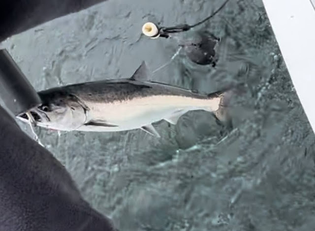 We caught a Coho Salmon (top fish), 4 King Salmon (2nd fish), and a Chum Salmon (3rd & 4th pic below...2 pics of the same fish).